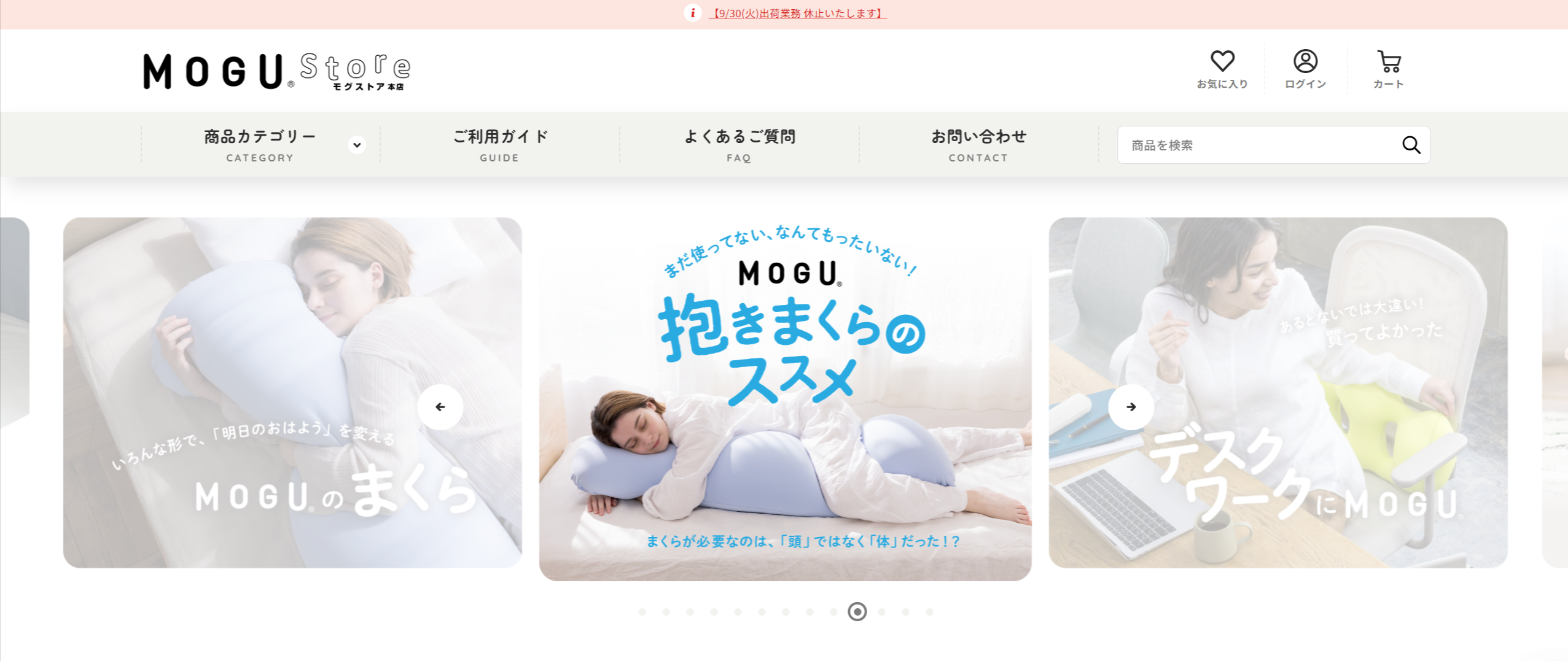 豊富で睡眠時やデスクワーク用のクッション等、
